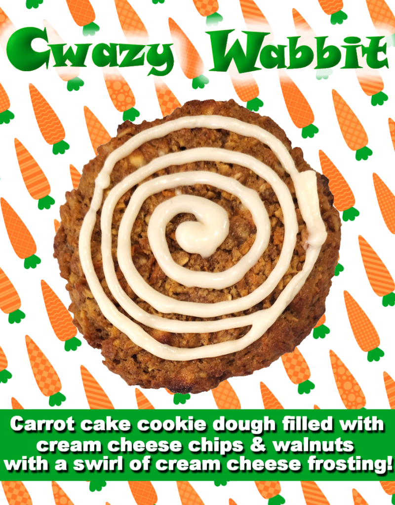 A new month is here and so is a brand new HOT COOKIE of the Month! Introducing the Mocha Me Crazy! Rich chocolate cookie dough infused with real coffee and semi sweet chocolate chips… Then topped with a drizzle of mocha icing and some mocha powder for a little extra java buzz! ☕ 🍪🍫 This … Continued