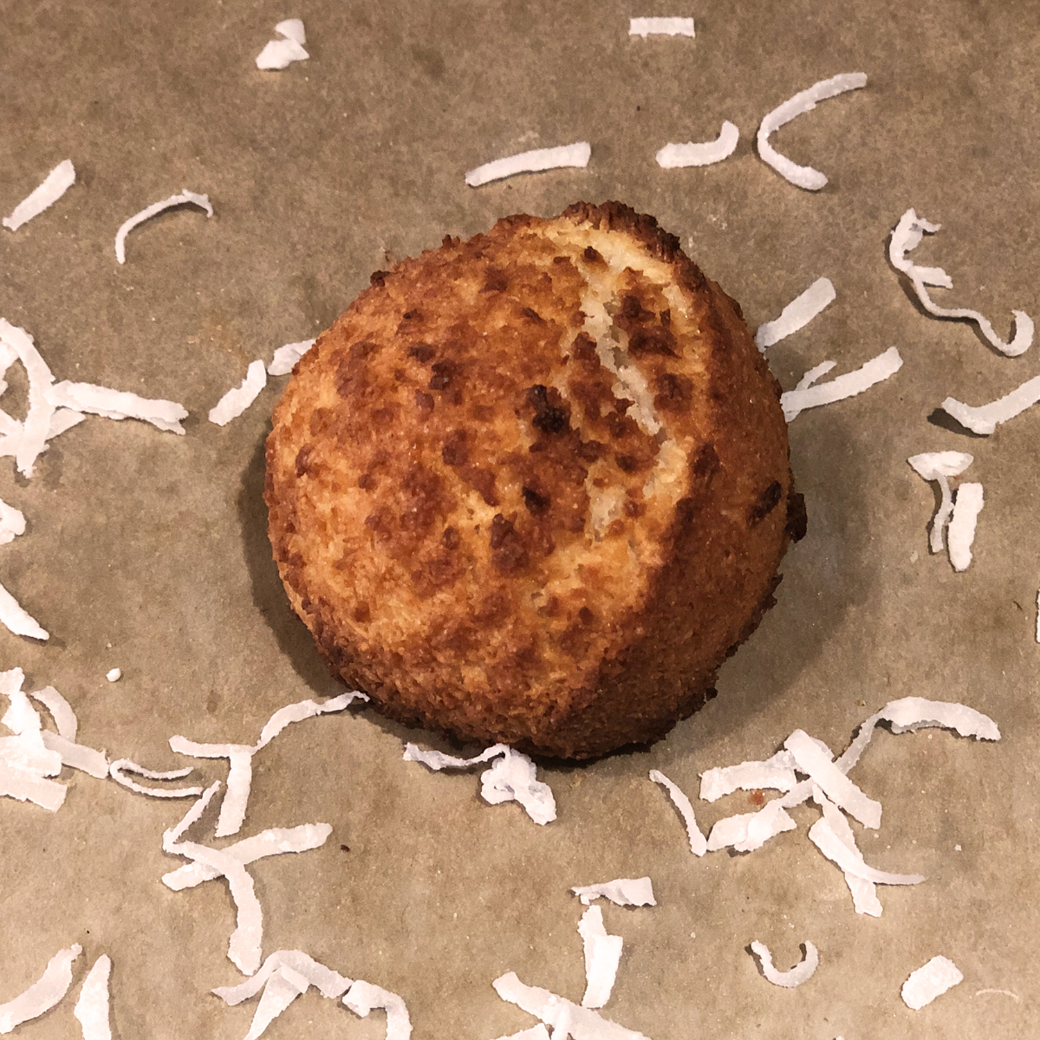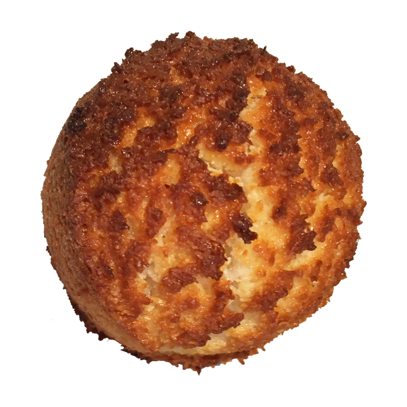 He’s a fragrant coconut macaroon ball – crisp and crunchy on the outside, moist and chewy on the inside.