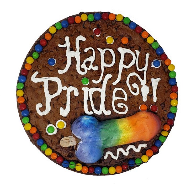 A 12-inch cookie in the flavor of your choice with a custom message for Pride and one of our limited edition rainbow Pride toppers.