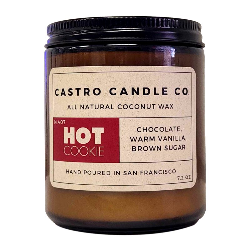 The experience of walking into Hot Cookie is not just about the delicious taste of our cookies… it’s also about that first whiff of baked yumminess that fills the air and delights the senses! So we paired with the Castro Candle Co. to a create a unique, limited edition HOT COOKIE scented candle!