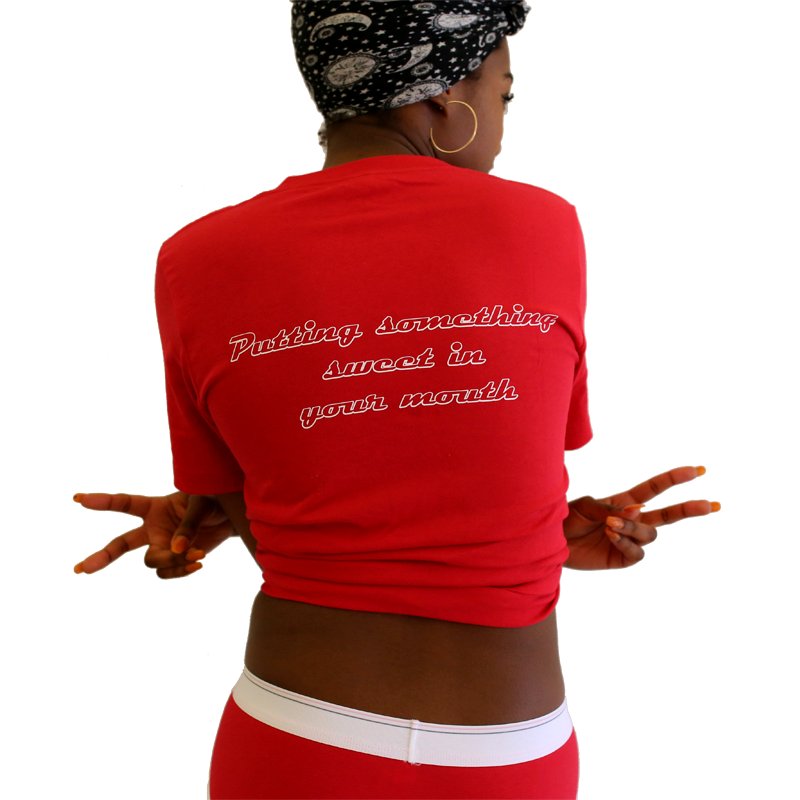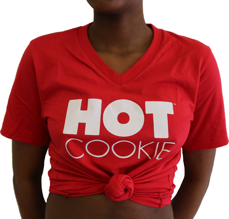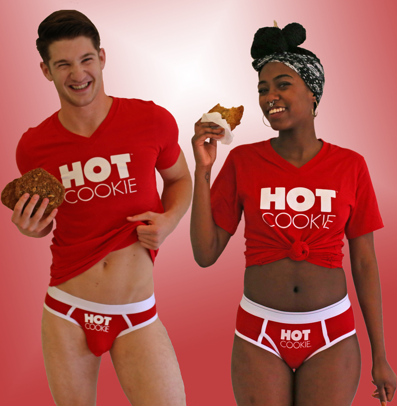 If making yourself known walking around with just undies isn’t appropriate, we suppose a Hot Cookie t-shirt will do! (Although we can’t imagine why you couldn’t just walk around in Hot Cookie undies.) A high-quality, unisex red t-shirt with Hot Cookie on the front and “putting something sweet in your mouth” on the back. See Description below for sizing details.